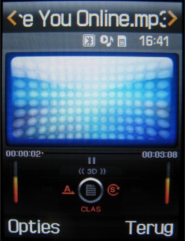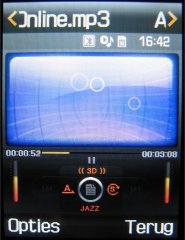 In de MP3 speler vindt men een 3D functie terug en de keuze uit vier equalizermogelijkheden (Normaal, Klassiek, Jazz en Rock). Al deze functies werken erg goed en men hoort ook daadwerkelijk een verschil in het geluid dat klinkt uit de mono speaker. Er zit alleen een addertje onder het gras. De meegeleverde MP3 bestanden klinken briljant door de headset en zijn speciaal gemasterd, maar speelt men nu eigen MP3 bestanden af die op de geheugenkaart geplaatst zijn dan klinken deze ineens een flink stuk minder.