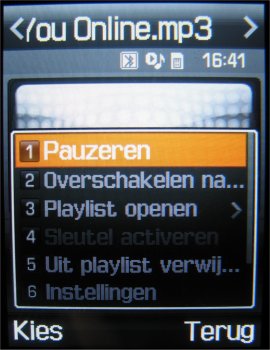 Wanneer al deze muziek op het toestel geplaatst is kan deze afspeelt worden. De voorkeur gaat hier uit naar de LG. De speler die helaas niet in de achtergrond gezet kan worden klinkt simpelweg beter. Ook de equalizer heeft meer opties en de headset heeft een afstandsbediening en 3.5 mm poort. De speaker is daarnaast niet zo schreeuwerig als de E900. Qua MP3 speler scoort de LG telg hoger.