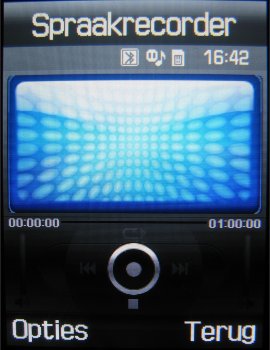 Helaas, geen voice dailing, maar de spraakrecorder of voice memo ontbreekt echter niet. De spraakrecorder neemt gesprekken en andere omgevingsgeluiden netjes op in AMR formaat. Het is mogelijk om deze bestanden te gebruiken als beltoon in het toestel. Verder valt er weinig op te merken bij deze functie behalve dat de equalizer gelijk is aan de MP3 speler op andere bedieningsknoppen na.