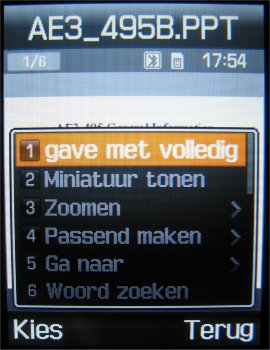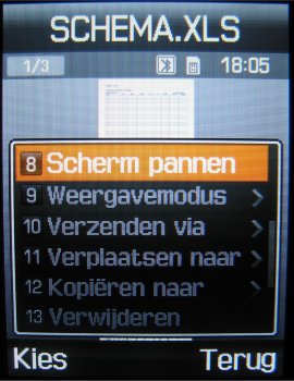 Naast de afbeeldingseditor is er ook een Picsel viewer in de E900 aanwezig, die de mogelijkheid geeft om PDF, Excel, Word en PowerPoint bestanden te bekijken. Men kan ze in het volledige scherm weergeven, erop inzoomen, roteren, verzenden en ook printen. Gebruikt men een video-out kabel dan is het ook mogelijk om met de E900 de bestanden te tonen op een scherm. Helemaal zonder iconen in het beeld de bestanden laten zien is niet mogelijk helaas. Men zal altijd nog de iconen boven de soft keys in het beeld zien, ook heeft het programma met bepaalde bestanden moeite. De Picsel viewer slikt niet alle genoemde bestanden even eenvoudig.