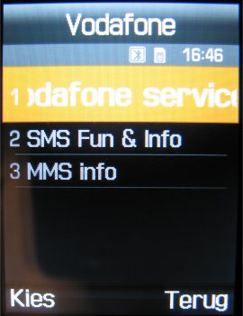 Het laatste onderdeel van het Toepassingen gedeelte is het Vodafone diensten onderdeel dat ook voor een deel terug komt bij het telefoonboek. In het telefoonboek komt alleen het gedeelte qua provider telefoonnummers terug. Het andere deel met informatie over de provider vindt men onder toepassingen terug.