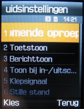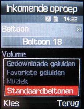 De meegeleverde beltonen zijn zoals men van Samsung mag verwachten goed. Alleen waarom zit er geen enkele standaard beltoon tussen. Ok, er zit één normale beltoon in, die de naam “normaal” net kan dragen. De E900 zou volgens Samsung ook een zakentoestel moeten zijn, maar waar zijn de echte standaard “Ring-Ring” beltonen. In het totaal van 23 beltonen (MMF, IMY, MP3, WAV, MIDI) is er eigenlijk geen standaard beltoon teruggevonden allemaal speelse beltonen. Maar er is een oplossing voor de zakelijke gebruikers, de MP3 beltoon. Men kan via de diverse connectiviteit oplossingen een beltoon over sturen naar het toestel en deze dan instellen als MP3 beltoon. Samsung heeft daarvoor een heel simpele oplossing gemaakt. In het menu van de beltonen zijn vier mappen opgenomen die men allemaal kan doorlopen, één voor MP3 bestanden, één voor standaard beltonen, één voor favoriete beltonen en één voor gedownloade beltonen. Opgenomen beltonen (opgenomen met de voicememo) kunnen niet direct gebruikt worden als beltoon, maar moeten verplaatst worden naar de map met favoriete beltonen.