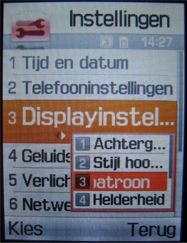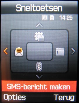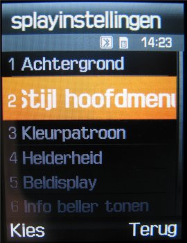 De bediening van het complete menu is verder enorm handig en overzichtelijk en kan door middel van de 5-richtings bedieningstoets in vier richtingen plaatsvinden. Men kan de kleuren/patronen en de tekstweergave aanpassen. Helaas is het niet mogelijk eigen patronen te downloaden of te installeren. Men zal het moeten doen met de twee standaard patronen wat ronduit weinig is.