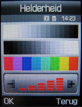 Het scherm van beide is ook een punt dat aangemerkt moet worden. De Samsung heeft een 262.000 kleuren QVGA scherm en de LG een 262.000 kleuren scherm met een resolutie van 176 x 220 pixels. Het scherm van de LG is dus kleiner dan de E900 qua resolutie. Maar niet fysiek, want daar scoort de LG weer hoger al scheelt het niet veel. De helderheid en afleesbaarheid van de E900 is beter dan de LG. Deze scoort daarop wel hoog, maar wanneer men onder een hoek naar het scherm kijkt dan wordt echt duidelijk welke de betere is.