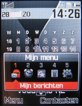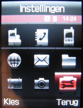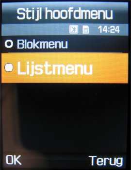 Via de twee oplichtende soft-keys kan men in het onderste gedeelte van het scherm twee opties aanklikken. Eén van deze opties is het menu binnen gaan. In het menu van de E900 zijn nu in een raster negen geanimeerde icoons zichtbaar die men via de 5-richtings bedieningstoets kan aanklikken. Er is keuze uit twee manieren waarop men dit weergeeft. Optie 1 is bekend van de D600 en wordt blokmenu genoemd, de tweede optie is een lijstmenu en geeft het complete menu in een lijst weer. Vooral de tweede optie is enorm handig wanneer men snel door het menu heen wil gaan.