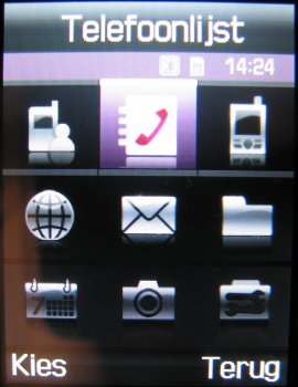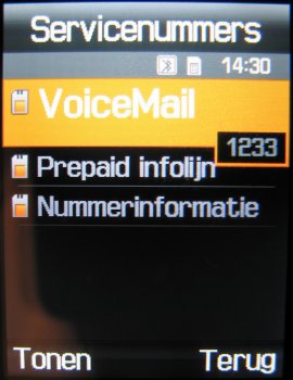 Het provider diensten onderdeel vindt men terug bij het telefoonboek van het toestel.
