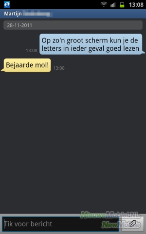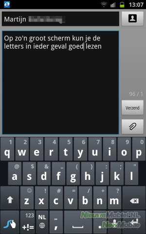 Over het typen met de Galaxy Note niets dan lof. Door het grote scherm zijn typfouten schaars. Bovendien reageert het toestel snel. Typen vereist overigens echt twee handen. Door het grote scherm is typen met één hand alleen weggelegd voor degenen met reuzenhanden. Met een hand konden wij in ieder geval niet het hele toetsenbord bestrijken.