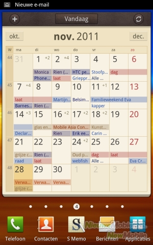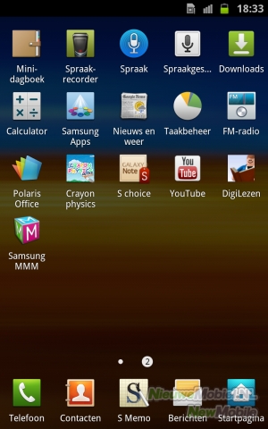 Onder in zowel de homescreens als in het applicatie-overzicht zijn standaard een aantal snelkoppelingen te vinden. En ook hier wordt de extra ruimte die het scherm biedt benut. Naast de telefoon-, contacten-, berichten- en applicaties-knop, is er ook plaats gemaakt voor een snelkoppeling naar 'S Memo'. Het geeft maar aan dat de 'notitie-functie' centraal staat bij de Galaxy Note. De S Memo applicatie komt verderop in deze review nogmaals aan bod.