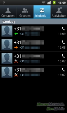 Het tweede tabblad is gereserveerd voor contactgroepen, die je zelf aan kunt maken. Het logboek met gesprekken is op het derde tabblad geplaatst. Wij vinden dat een logische indeling. Waaronder ook eventuele e-mail, Facebook en Twitter-accounts. Het derde tabblad is voor de geschiedenis van gesprekken, berichten, e-mails en sociale netwerkberichten. Op het vierde tabblad ‘activiteiten’, vind je updates van je contacten op sociale media. Dit is wat ons betreft overbodig, maar niet erg storend. Toch geven we de voorkeur aan de native apps van Twitter en Facebook.