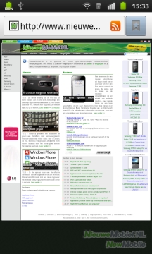 De browser die je op de Galaxy S Plus aantreft is de standaardbrowser van Android, zonder aanpassingen. Deze browser functioneert prima. webpagina’s worden vlot weergegeven. De opzet van de browser is zoals je die gewend bent van andere toestellen die op het besturingssysteem van Google draaien: Bovenaan de pagina zit de adresbalk met daarnaast een toets naar je bladwijzers. Via de menuknop heb je aantal extra opties, zoals het openen van een nieuwe venster en het toevoegen van een favoriete website aan de lijst met bookmarks.