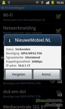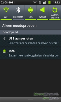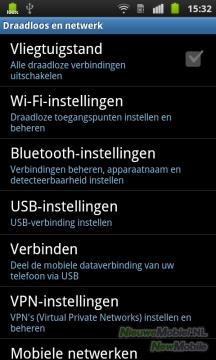 De Galaxy S Plus ondersteunt net als zijn voorganger WiFi. Ook is het mogelijk om te verbinden met een WiFi-N netwerk. Verbinden met nieuwe netwerken kan via het bekende instellinge menu van Android. Met eerder gebruikte netwerken wordt automatisch opnieuw verbinding gemaakt. Zowel WiFi als Bluetooth is uit te zetten via het menu dat verschijnt zodra je het mededelingengebied van Android uitklapt, door van boven naar onder over het scherm te vegen. Dit is een handige uitbreiding op het standaard mededelingengebied van Android, waardoor je snel bij de belangrijkste menu’s opties kunt komen.