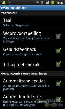 Zoals je waarschijnlijk al wist (en anders weet je het nu) heeft Samsung een deal met Swype om haar Android-toestellen uit te rusten met dit innovatieve toetsenbord. Je kunt hiermee woorden vormen zonder het scherm los te laten. Je veegt gewoon met je vinger van de ene naar de andere letter. Zo vorm je een lijn langs alle letters van het woord. Onze ervaring is dat je met Swype snel woorden in kunt voeren, sneller dan via een conventioneel toetsenbord op een touchscreen. Swypen is bovendien sneller te leren dan je zou denken als je voor het eerst iemand een Swype-toetsenbord ziet gebruiken.