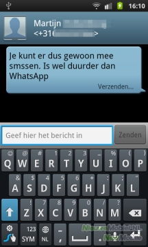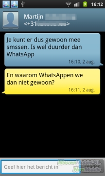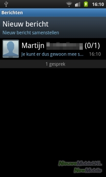 Samsung heeft ook de SMS-interface van het toestel aangepast. De Koreanen maakten een kleurige conversatie weergave van SMS weergegeven. Wij vinden dit een handige weergave, die je op meerdere toestellen tegenkomt, en zonder leercurve intuïtief te bedienen is.
