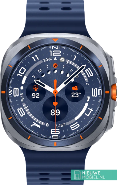 De Samsung Galaxy Watch Ultra is het eerste Galaxy-horloge van een hele nieuwe generatie. De Watch Ultra heeft een 10 ATM behuizing, en is daardoor geschikt om 100 meter diep mee te duiken. De uniek vormgegeven kast met rond helder scherm is vierkant en oogt daardoor toch iets anders dan z'n grote concurrent van Apple.