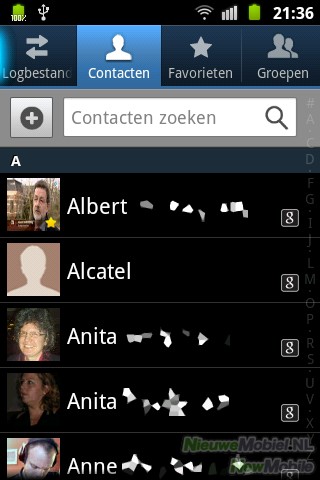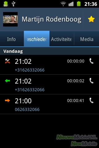 In het contactenmenu is ook eenvoudig het logboek te raadplegen. Hierin staan bel- en sms-conversaties in chronologische volgorde weergegeven.