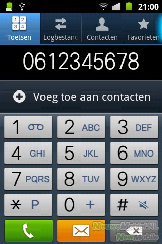 Het starten van een oproep gaat via de beltoets. Je komt dan in het belmenu terecht waarna je door middel van nummer- of cijfercombinaties contacten kan opzoeken. Dit systeem is standaard in Android, maar daarom niet minder handig.