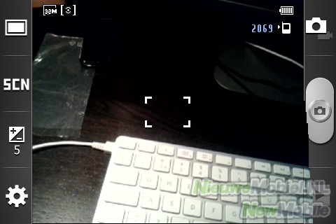 Aan de rechterkant van het scherm vinden we de switchknop naar de videostand, de cameratoets en de snelkoppeling naar de galerij. In videostand ziet het menu er ongeveer hetzelfde uit. Grootste verschil is het ontbreken van instelbare scènemodi. Daarnaast kan de videostand worden ingesteld op ‘normaal' of op een limiet voor MMS bestanden.