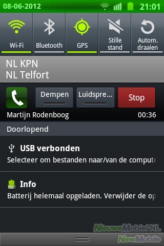 De notificatiebalk in het homescreen van de mini 2 is net als bij andere Androidtoestellen uitschuifbaar. In het scherm dat verschijnt staan alle binnengekomen notificaties vermeld en is het mogelijk verschillende verbindingen te beheren. Met één druk op de knop is het mogelijk bijvoorbeeld WiFi, GPS of Bluetooth in- of uit te schakelen.