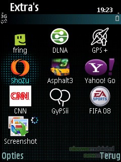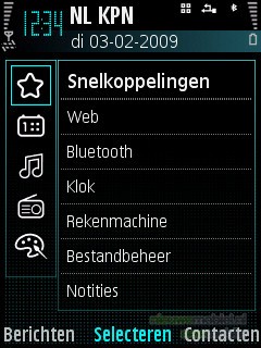 Het menu word geopend door de menutoets in te drukken en op elke plek in het menu kan de indeling gewijzigd worden van raster naar lijst en andersom. Navigatie in het menu gaat doormiddel van de 4-wegnavigatietoets en de optische muisaanwijzer/bevestigingstoets. Dit is een verre van ideale combinatie want het gebeurd regelmatig dat wanneer de gebruiker een keuze wil bevestigen de selectie nog een regel verspringt. De gevoeligheid van de optische muisaanwijzer kan worden aangepast en dit bied enigszins een oplossing maar dan werkt hij weer minder prettig in de internetbrowser. Verderop meer hierover.
