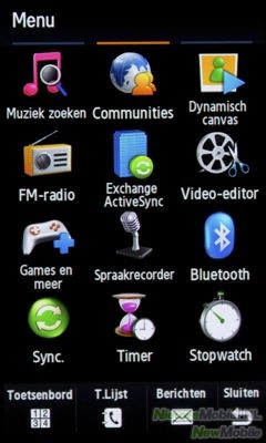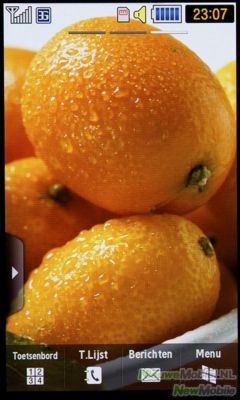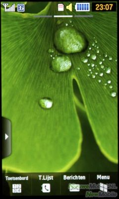 Het touch gedeelte van het scherm brengt een aantal leuke voordelen met zich mee. Zo kan je net als bij de iPhone over het beeld heen vegen om door menu’s en lijsten heen te scrollen. Ook wanneer je bijvoorbeeld tijdens het sms’en de telefoon op zijn kant houdt verschijnt er ineens een volledig QWERTY toetsenbord, nog een van de voordelen van een dergelijk scherm. Waar Samsung een stapje voor heeft op de concurrenten is het schrijf systeem waar zo direct op verder gaan. Hiermee teken je letters uit op het scherm waarna ze omgezet worden in getypte letters.