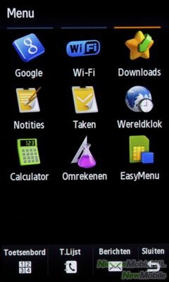 Het menu wat zowel toegankelijk is via een software matige toets als de centrale hardwarematige knop heeft een standaard raster vorm. De pictogrammen staan dus netjes in rijen van drie bij vier en onderverdeeld in drie bladzijden. Om te wisselen tussen bladzijden veeg je over het scherm heen. Zodra je op een pictogram drukt geeft de Jet een kort trilsignaal af. Het voelt niet direct alsof je een echte toets indrukt maar het is een leuk en handig detail wat regelmatig terugkomt bij allerlei applicaties. Het voordeel is dat je altijd op de hoogte bent wanneer er een applicatie geopend wordt. Zo kom je niet voor nare verassingen te staan als de batterij ineens leeg is omdat er allerlei programma’s op de achtergrond draaien. Als je het liever niet hebt is dat echter ook in te stellen.