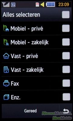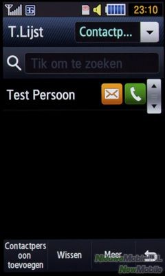 De contactpersonen staan alfabetisch in een lijst waardoorheen gescrold kan worden door over het scherm te vegen. Dit gaat redelijk soepel maar soms niet zo snel als je zou willen. Naast elke contactpersoon staat dan een telefoontje en een envelop waardoor je dus die keuze al kan maken in de lijst wat natuurlijk tijd bespaart.