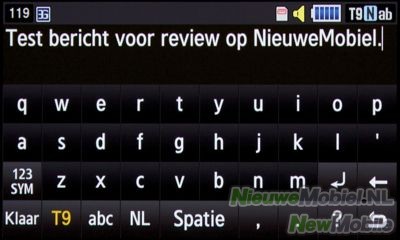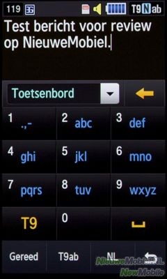 Het sturen van sms’jes en e-mails werkt prima. Er kan gekozen worden voor het traditionele sms’en via een numeriek toetsenbord door de Jet verticaal te houden. Als je het toestel echter op zijn kant keert komt er een volledig QWERTY toetsenbord tevoorschijn. Dit is een erg prettige optie omdat het de keuze bied tussen sms’en met één hand en twee handen. Eén hand in combinatie met een QWERTY toetsenbord werkt nou eenmaal niet lekker maar in de praktijk valt op dat daar toch regelmatig behoefte aan is.