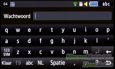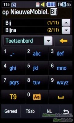Er is ook T9 tekstinvoer die te alle tijde eenvoudig is uit te schakelen omdat de knop daarvoor altijd zichtbaar is. De tekstinvoer zelf bestaat uit woord suggesties die tevoorschijn komen naast hetgeen je aan het typen bent. Dit werkt op zich aardig maar corrigeert bijvoorbeeld geen fout gespelde woorden en levert meestal de suggestie pas één letter voordat je het hele woord al getypt hebt.