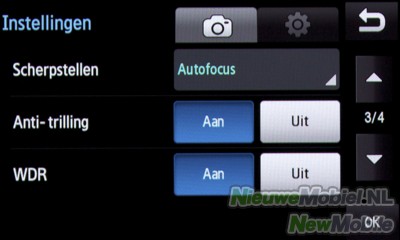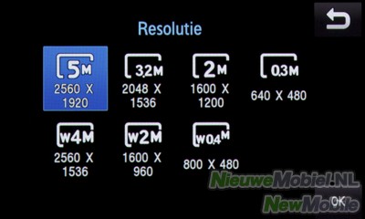 De 5.0 megapixel camera met flitser kan op de volgende wijzen ingesteld worden; een timer, een resolutie tussen 800 x 480 en 2560 x 1920, witbalans, effecten, ISO waarden, belichtingsmeter, scherpstellen, anti trilling, WDR, knipperdetectie, beeldkwaliteit, contract, intensiteit en scherpte. Verder kan de fotostand gezet worden op één, smile shot, doorlopend, panorama, mozaïek en kader. Bij de scenemodus kan gekozen worden voor, geen, portret, landschap, nacht, sport, feestje binnenshuis, strand/sneeuw, zonsondergang, dageraad, herfstkleur, vuurwerk, tekst, kaarslicht en verlichting. De flitser kan aan, uit en op automatisch. De belichtingswaarde kan ingesteld worden van -2 tot 2. Kortom genoeg in te stellen.