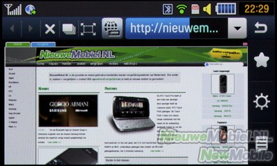 De browser werkt zeer goed met name door het touchscreen. Net als bij andere touchscreen telefoons kan je als het ware de website vastgrijpen door er met een vinger op te drukken en de site naar de gewenste positie te slepen. Snel doorscrollen en vinden wat je zoekt werkt hierdoor heel prettig. Daarnaast laad de browser ook bijzonder snel de gewenste site. Dit is natuurlijk afhankelijk van de site in kwestie en het draadloze netwerk waar op dat moment gebruik van gemaakt wordt, maar over het algemeen is het snel te noemen.
