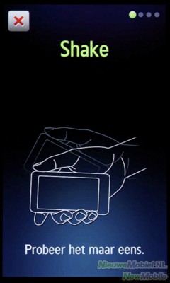 De kubus heeft ook nog een derde bedieningsmethode waar we niet bepaald mee uit de voeten konden. Door de knop aan de zijkant iets langer ingedrukt te houden opent er eerst het programma zelfstudie beweging. Deze geeft instructies hoe je de kubus kunt bedienen door de telefoon heen en weer te bewegen. Deze instructie komt overigens iedere keer tevoorschijn. Vervolgens kan je dan enkel de mp3 speler en camera openen door een ruk naar links of rechts te geven. Eenmaal geopend kan je de camera bedienen door bovenop het toestel te tikken. Bij twee keer tikken telt de camera af, en maakt de jet na drie seconden een foto. Je hoeft dus niet bang te zijn dat het getik de foto beweegt. De MP3 speler is ook te bedienen met bewegingen. Hier kan je liedjes skippen door er een soort polsbeweging mee te maken en pauzeren door bovenop het toestel te tikken. Voordat je die handelingen echter onder de knie hebt is RSI een reële kans en we schatten ook in dat het voor wat genante taferelen in het openbaar kan zorgen.
