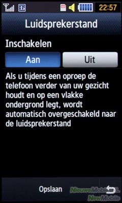 Al deze opties worden heel fijn groot weergegeven zodat je tijdens het bellen alles direct kan vinden en de kans dat je de verkeerde knop aanraakt verkleind wordt. De handsfree optie heeft ook nog een leuke extra. Er kan ingesteld worden dat als de telefoon tijdens het gesprek op een plat oppervlak geplaatst wordt de speakerphone automatisch aan gaat. Dit werkt in de praktijk prima want zodra de telefoon ligt schakelt de Jet binnen een seconde om.