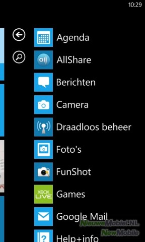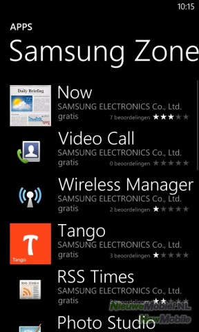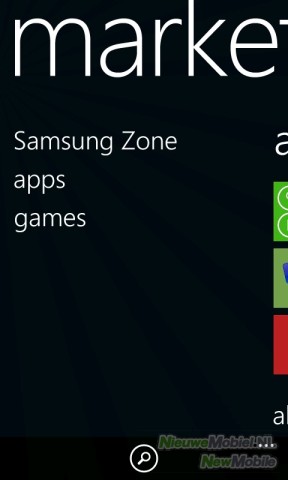 Omdat deze toepassingen op elke Windows Phone, ongeacht het merk, zijn geïnstalleerd heeft Samsung ervoor gekozen om zelf nog een zestal applicaties toe te voegen. Dit zijn AllShare, Draadloos beheer, FunShot, MiniDiary, Now, Photo Studio, RSS Times en video-oproep. We zullen er een aantal uitlichten. Samsung heeft ook nog Samsung Zone aan de Marketplace toegevoegd. Hier staan door Samsung gebouwde applicaties.