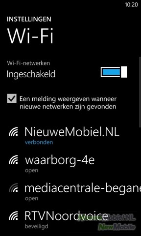Klein minpunt van Windows Phone is het feit dat je alleen via de instellingen WiFi en Bluetooth kan in- of uitschakelen. Een actie die bijvoorbeeld bij Android een stuk minder tijd kost, hoewel dat met een app op te lossen is Verbinding maken met een netwerk gaat verder wel snel en een volgende keer komt de verbinding met een eerder gebruikt netwerk automatisch tot stand.