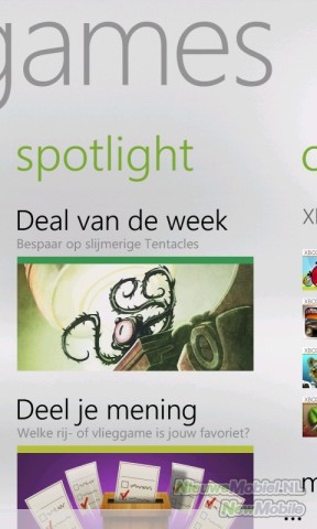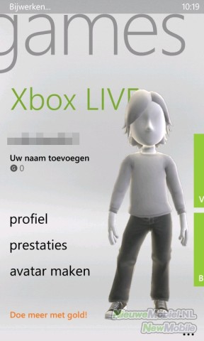Hoewel er geen spelletjes op de Omnia W staan, vinden we wel een icoontje met de titel Games in het menu. Dit bied toegang tot de Xbox Live integratie van Windows Phone.