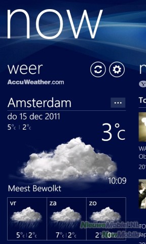 Now is een toepassing waarmee het weer, nieuws, aandelen, valuta en top tweets bekeken kunnen worden. Een Nederlandse weerlocatie toevoegen is geen probleem maar Nederlands nieuws is niet beschikbaar.