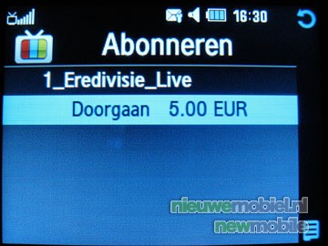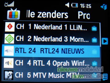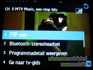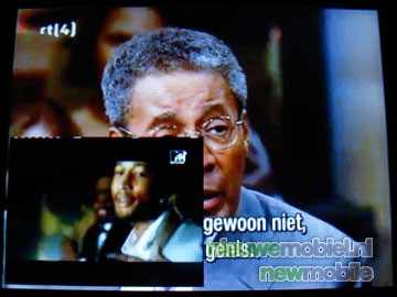 De meest belangrijke extra optie van het toestel is natuurlijk de mogelijkheid tot mobiel TV kijken. Na het uitschuiven van de antenne is één druk op de knop voldoende om het programma te openen. Na een kleine tien seconden waarin de programma lijsten geladen worden komt er een helder overzicht tevoorschijn van de 10 kanalen plus 2 betaalzenders; Nederland 1, Nederland 3, RTL 24 Nieuws, RTL4, MTV, SBS 6, Jetix/Veronica, Discovery Channel, Nick Toons, XITE Music Video's. Dit basis pakket van KPN kost 9,95 EURO per maand. Voor de zenders Eredivisie Live en Adult XXX TV moet 5 EURO per maand betaald worden. Achter de naam van het kanaal "rolt" het programma wat er momenteel op is voorbij. Luxer dan veel TV's aan de ene kant, maar aan de andere kant moet de gebruiker het wel zonder teletekst stellen. Na het kiezen van een zender laadt het programma al na ongeveer vijf seconden. Het kiezen van een zender brengt ook nog opties mee die veel TV's niet kennen, namelijk picture in picture. Hierdoor kunnen er twee kanalen tegelijk bekeken worden op het beeldscherm.