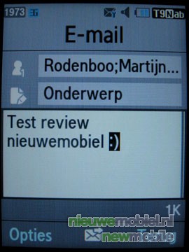 Er is ook de mogelijkheid tot het verzenden van e-mails en MMS berichten. Hierbij zijn er mogelijkheden tot het toevoegen van bijlagen zoals losse bestanden en visitekaartjes. De telefoon ondersteunt geen mogelijkheden tot instant messaging.