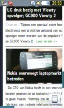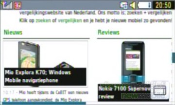Browsen op het web gaat erg makkelijk met de M8800 Pixon. Het schakelen tussen verticaal en horizontaal beeld gaat zonder problemen en in de fullscreenstand wordt het 3,2 inch grote beeldscherm volledig benut.