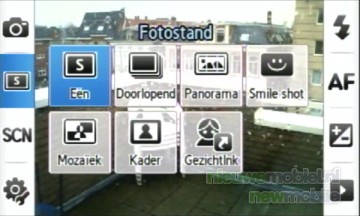 De fotostanden waaruit gekozen kan worden zijn: Eén, Doorlopend, Panorama, Smile shot, Mozaiek, Kader, Gezichtsherkenning. De beschikbare scènes zijn: Geen, Portret, Landschap, Nacht, Sport, Binnenshuis, Strand/Sneeuw, Zonsondergang, Dageraad, Herfstkleur, Vuurwerk, Tekst, Kaarslicht en Tegenlicht. De scherpstelstand en belichtingswaarde kunnen ingesteld worden. Daarnaast kan bij de instellingen de zelfontspanner, resolutie, witbalans, effecten, ISO, belichtingsmeter, antitrilling, WDR, knipperdetectie, beeldkwaliteit, contrast, intensiteit en de scherpte ingesteld worden.
