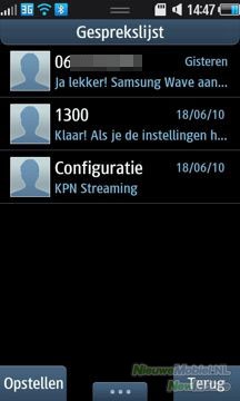 Zoals gezegd kunnen WiFi en Bluetooth snel ingeschakeld worden via de statusbalk. Met een eerder gebruikt WiFi-netwerk wordt snel weer opnieuw verbinding gemaakt. Als WiFi is ingeschakeld maar de verbinding niet goed is wordt er niet automatisch gebruik van gemaakt mobiel internet in plaats daarvan komt een foutmelding in beeld bij het laden van een site. Het bereik van de Wave voor 3G internet is ook wat aan de magere kant.