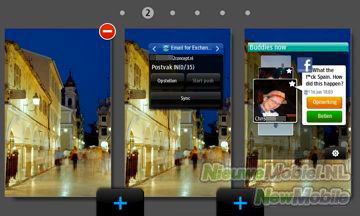 Er zijn standaard drie startschermen beschikbaar en dit is uit te breiden tot maximaal tien. Het standaard startscherm is de meest linkse maar de volgorde kan aangepast worden door het toestel te kantelen als je de widgets aan het veranderen bent. Er passen niet erg veel widgets op een startscherm en ze worden ook niet heel strak gerangschikt.