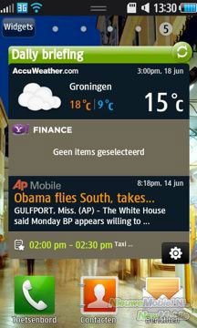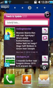 Jammer genoeg is de functionaliteit van een groot deel van de widgets erg beperkt. Vaak is het niet meer dan een snelkoppeling naar een applicatie of website en de agendawidget is alleen maar een maandoverzicht waarin gebeurtenissen niet worden weergegeven. Widgets met in meer of mindere mate een echte functie zijn Google, meest bezocht, feeds & update, buddies now, daily briefing en e-mail sync. In de feeds & update widget kunnen statusupdates van Twitter en Facebook bekeken worden en het heeft dus vrijwel dezelfde functie als de friendstreamwidget van HTC Sense. In buddies now worden je favorieten getoond in een waaier met eventueel de laatste statusupdate van Facebook en/of Twitter en de mogelijkheid om hierop te reageren of de persoon te bellen. Wanneer de persoon geen statusupdate heeft kan in plaats van een reactie snel een SMS opgesteld worden. Daily briefing geeft een overzicht met het weer, aandelenkoersen, nieuws en geplande afspraken uit de agenda.