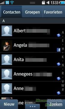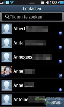 Contacten/vrienden uit webaccounts of sociale netwerken kunnen geselecteerd worden om te tonen in het telefoonboek waarna je ze kan koppelen aan bestaande contacten in je telefoonboek. Voor Facebook en Google gaat dit automatisch maar voor Twitter moet het handmatig gebeuren. Door de koppeling worden beschikbare profielfoto’s, contact-, woon- en werkgegevens gesynchroniseerd en kunnen statusupdates en foto’s per persoon bekeken worden in het overzicht van de contactpersoon. In feite is dit exact hetzelfde als wat HTC doet met de contactenlijst in haar Sense-interface op Androidtoestellen.