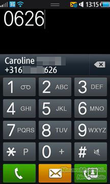 Door de toetsenbordtoets te selecteren komt een numeriek toetsenbord tevoorschijn met een onhandige smartdial functie. Je kan alleen cijfers intypen en als deze in die volgorde in een telefoonnummer voorkomen van een bestaand contact dan verschijnt deze in beeld. Niet bepaald een bruikbare functie als je het ons vraagt. Via snelkoppelingen kan je hier ook naar de contactenlijst, oproepenlijst en favorieten.