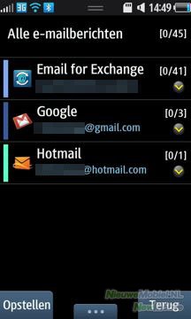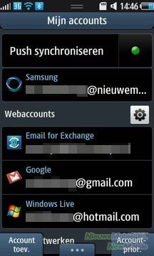 De Wave wordt geleverd met een jaar social hub premium. Dit zorgt ervoor dat berichten van de al eerder genoemde webaccounts en sociale netwerken zonder vertraging naar het toestel gepusht worden. Gmail en Hotmail konden zonder problemen ingesteld worden. E-mails kunnen gegroepeerd per account bekeken worden of alles door elkaar en dan zijn ze gemarkeerd met een kleur. Om de zoveel tijd worden gelezen en verwijderde berichten gesynchroniseerd met het postvak IN. Door de gebruiker in webmail aangemaakte mappen worden ook ondersteund op het toestel.