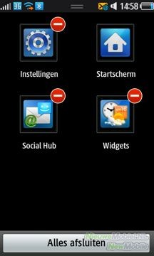 Taakbeheer kan geopend worden door de menutoets even ingedrukt te houden. Tussen de actieve toepassingen staat ook widgets als aparte toepassing en wanneer je dit afsluit verdwijnen alle widgets van de startschermen. Het is makkelijker om de telefoon even opnieuw op te starten maar smartphonewaardig is het niet.