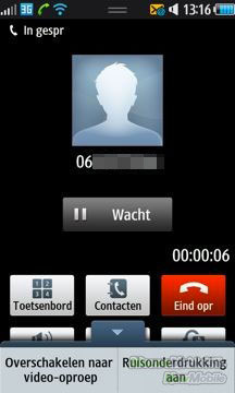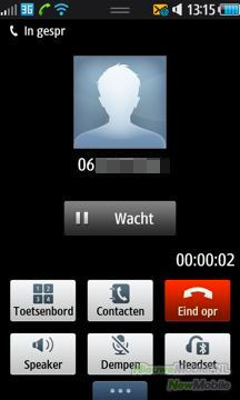 Tijdens het bellen hebben zich geen problemen voorgedaan. De belkwaliteit was goed en het geluid kan hard genoeg. De luidspreker kan ontzettend hard. Tijdens het bellen zijn de functies toetsenbord, contacten, speaker, dempen en headset meteen binnen bereik via virtuele toetsen. De nabijheidsensor zorgt ervoor dat het scherm snel aan- en uitschakelt in een gesprek.