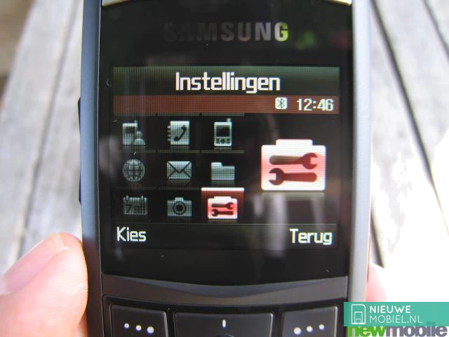 - Minpunten: Geen datakabel in pakket, geen geheugenkaartslot, geen profielen, geen thema’s downloaden, geen voice dailing of voice command aanwezig, Vreemde Samsung eigenaardigheden