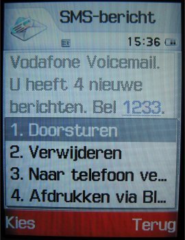 Bij een SMS bericht kan men in totaal 459 tekens invoeren. Dat komt neer op drie aaneengeschakelde berichten, wat wel wat laag is voor een toestel. Minstens vijf aaneenschakelde berichten had wel gemogen. Waarom Vodafone dit heeft laten doorvoeren is niet direct duidelijk.